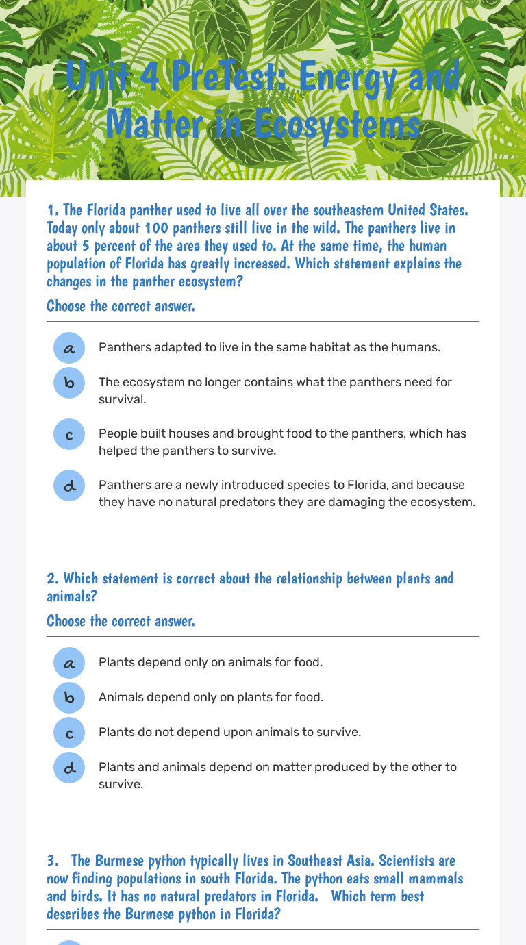Unit 4 Pretest Energy And Matter In Ecosystems Interactive Worksheet By Dione Gerwitz Wizer Me Source: app.wizer.me